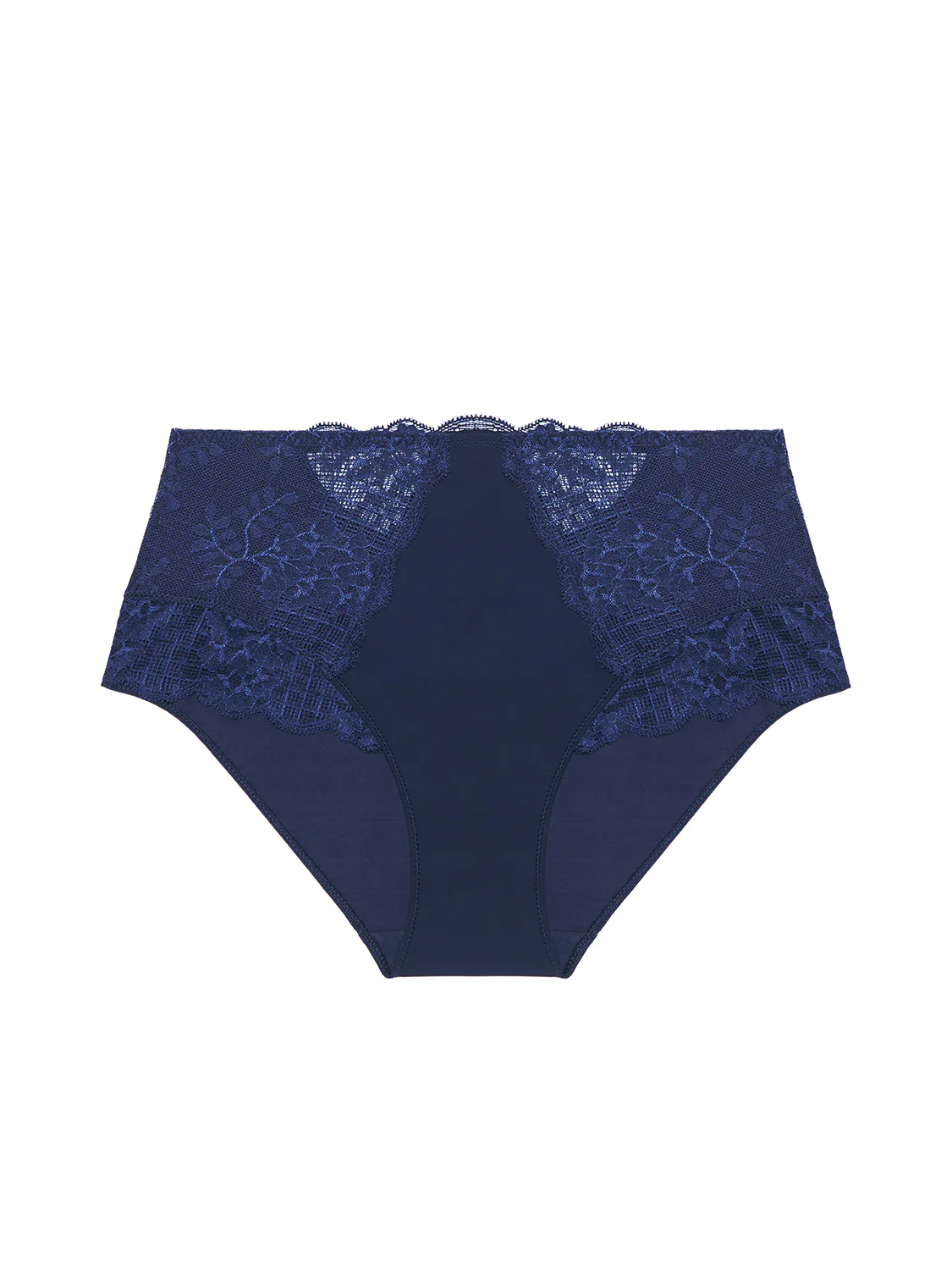 Culotte a vita alta di pizzo e mesh che unisce fiori e grafiche moderne. Elegante e femminile.