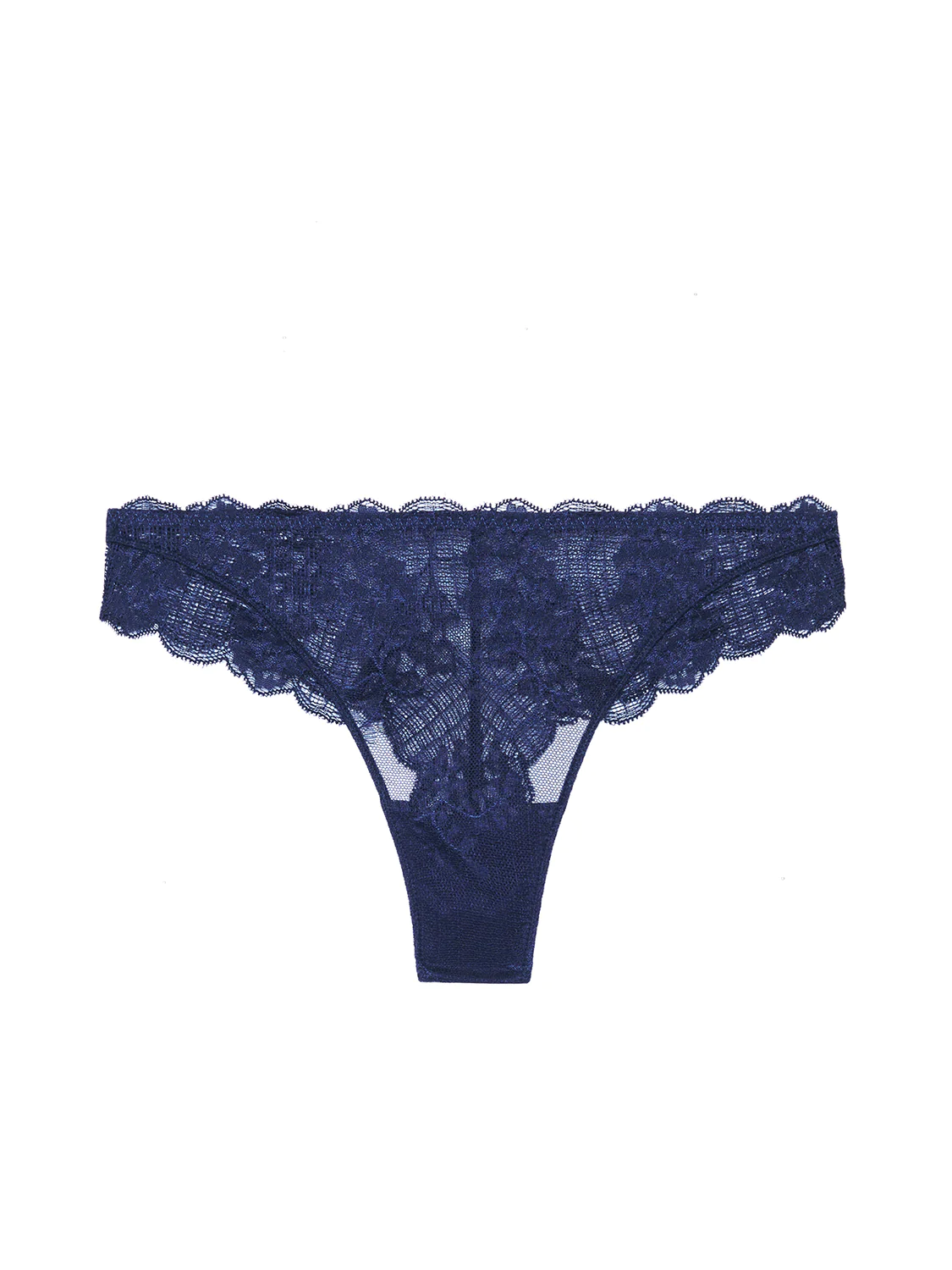 Tanga di pizzo raffinato che unisce fiori e grafiche moderne. Elegante e femminile.